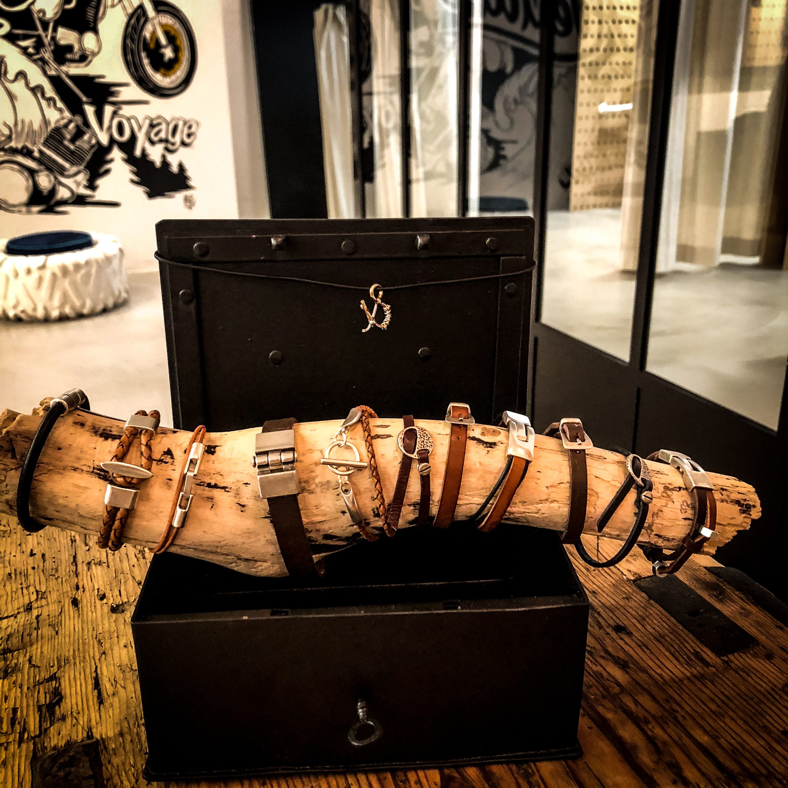 Le corps du bracelet est issu de chutes de cuir bénéficiant d’un tannage végétal, que nous recoupons et assemblons en fonction des tendances et des goûts des clients.